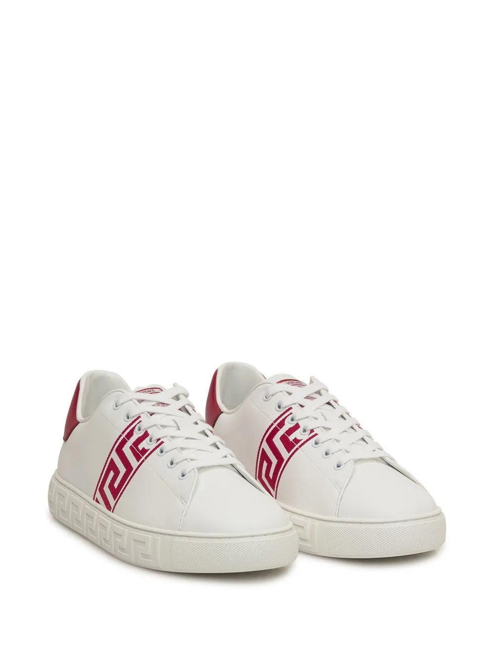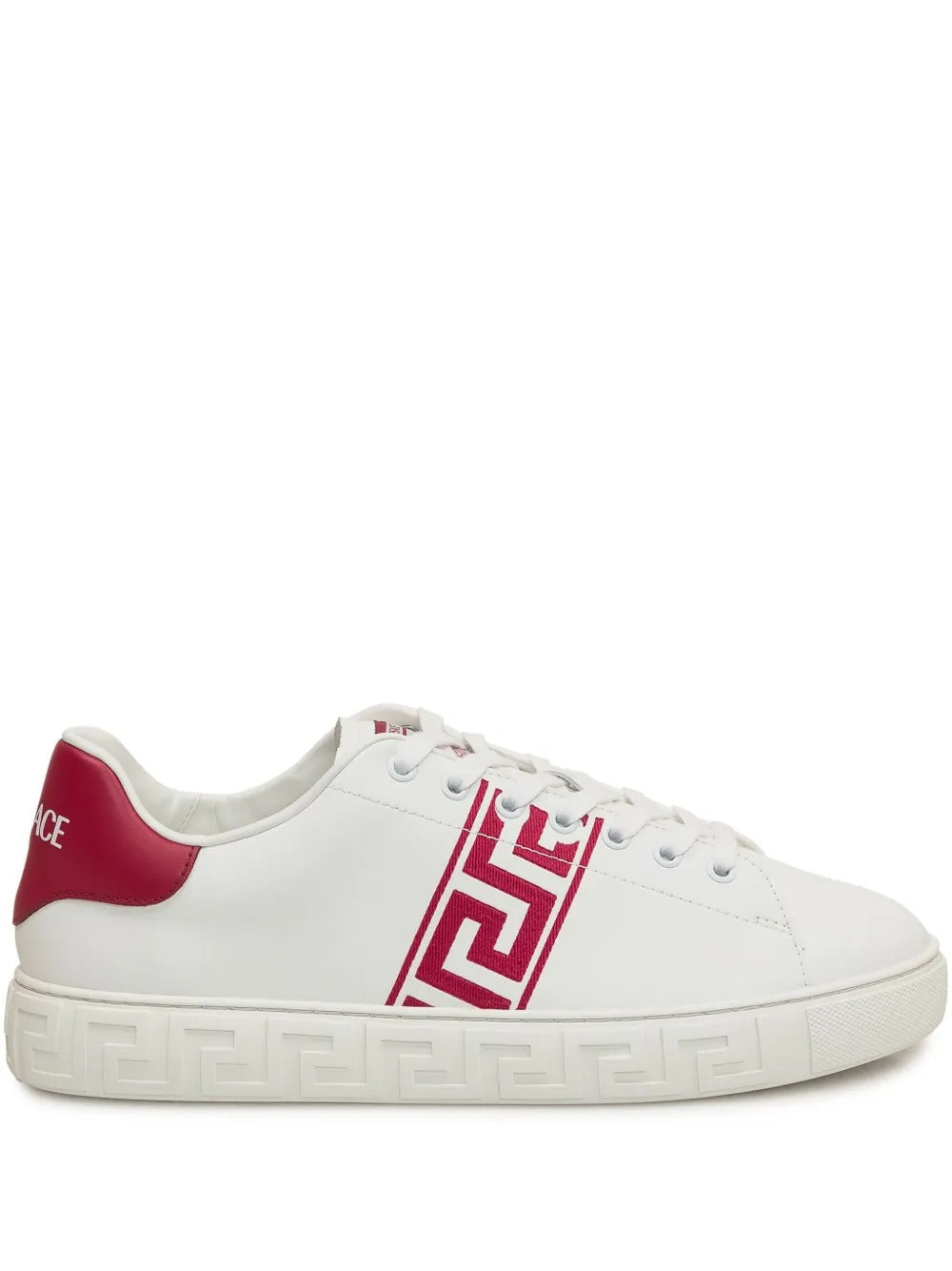 Highlights white front lace-up fastening signature Greca-pattern print flatform sole round toe Composition Lining: Calf Leather 100% Outer: Calf Leather 100%, Polyamide 100% Sole: Rubber 100%