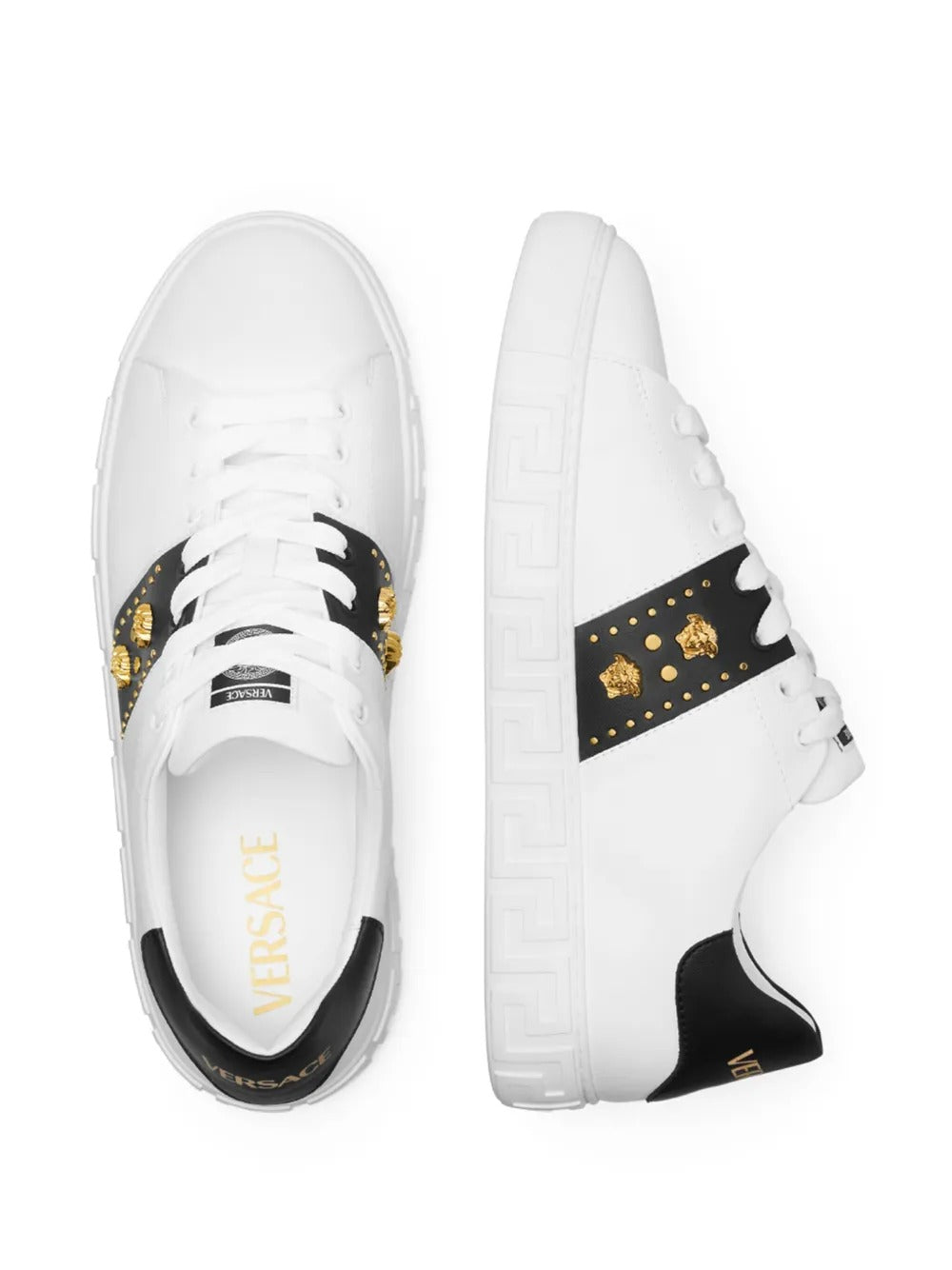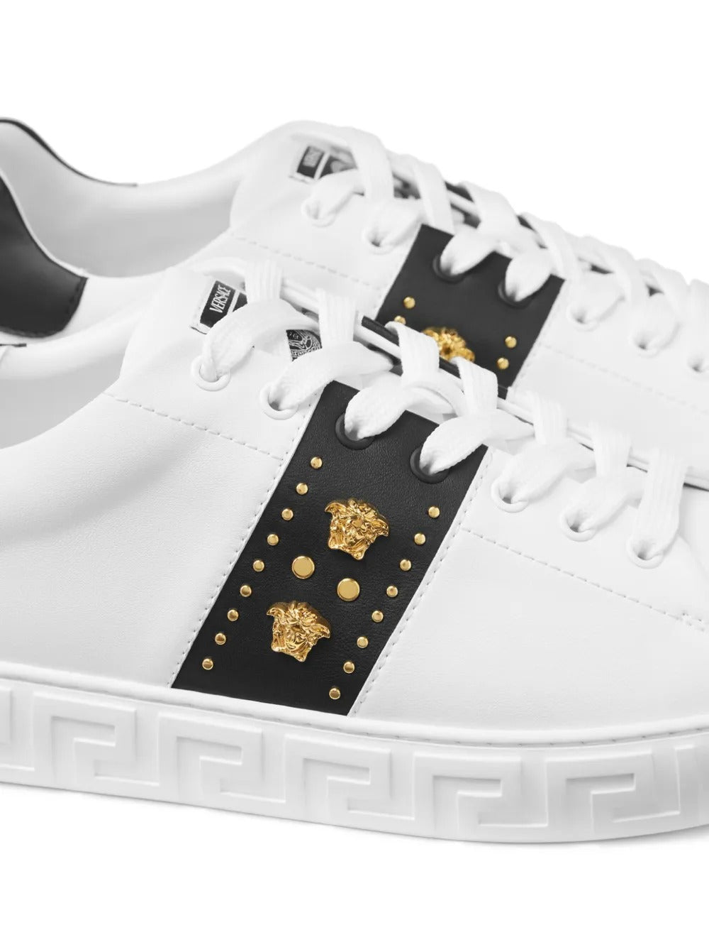 Highlights white/black front lace-up fastening Medusa Head motif signature embossed Greca detailing round toe rubber sole Composition Sole: Thermoplastic Polyurethane (TPU) 100% Outer: Nylon 100% Lining: Polyester 100%