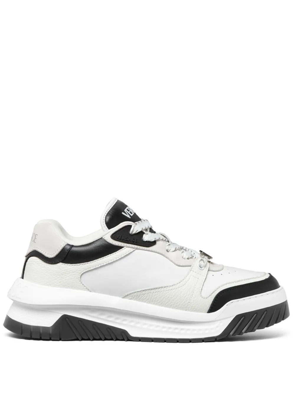 VRS sculpts the Odissea with bold architectural lines, giving the calf-leather upper a layered, panelled structure that pairs modern volume with refined craftsmanship. A silver-tone logo plaque adds a polished focal point at the side, while a logo patch at the tongue reinforces the sneaker’s signature identity. The rounded toe and lace-up profile keep the silhouette balanced, and a chunky rubber sole grounds the design in contemporary, street-ready attitude.