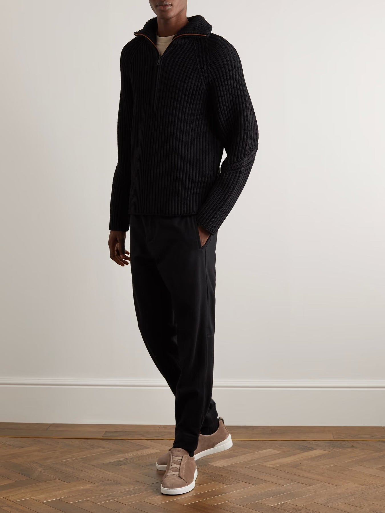 Crafted in Italy from tactile black suede, the ZGN Triple Stitch Slip-On brings a refined, minimalist approach to everyday luxury. Elasticated inserts replace traditional laces, making the fit effortless while highlighting the iconic Triple Stitch detail at the heel — a signature nod to Zegna tailoring.