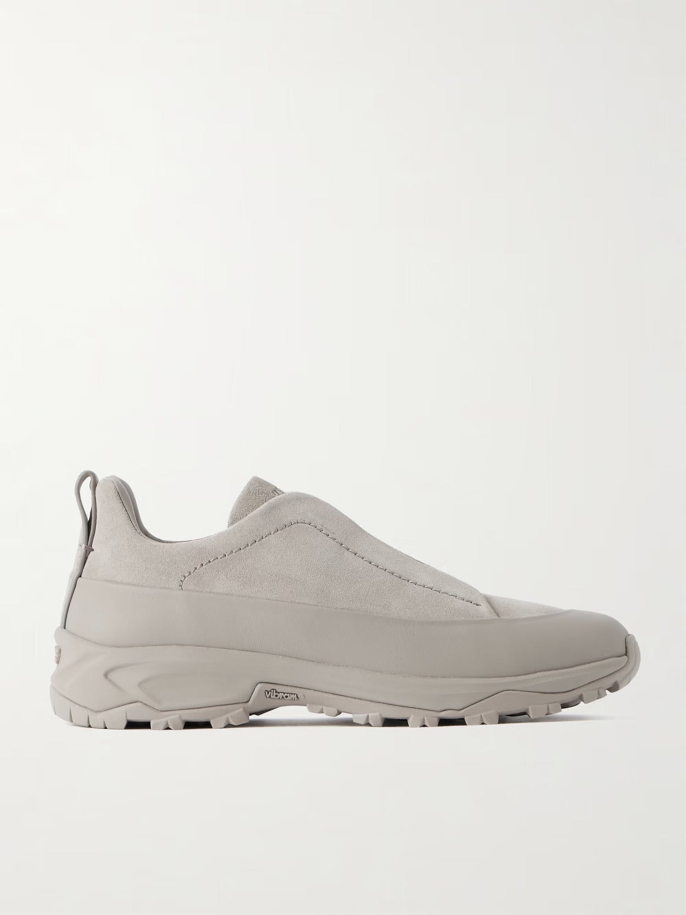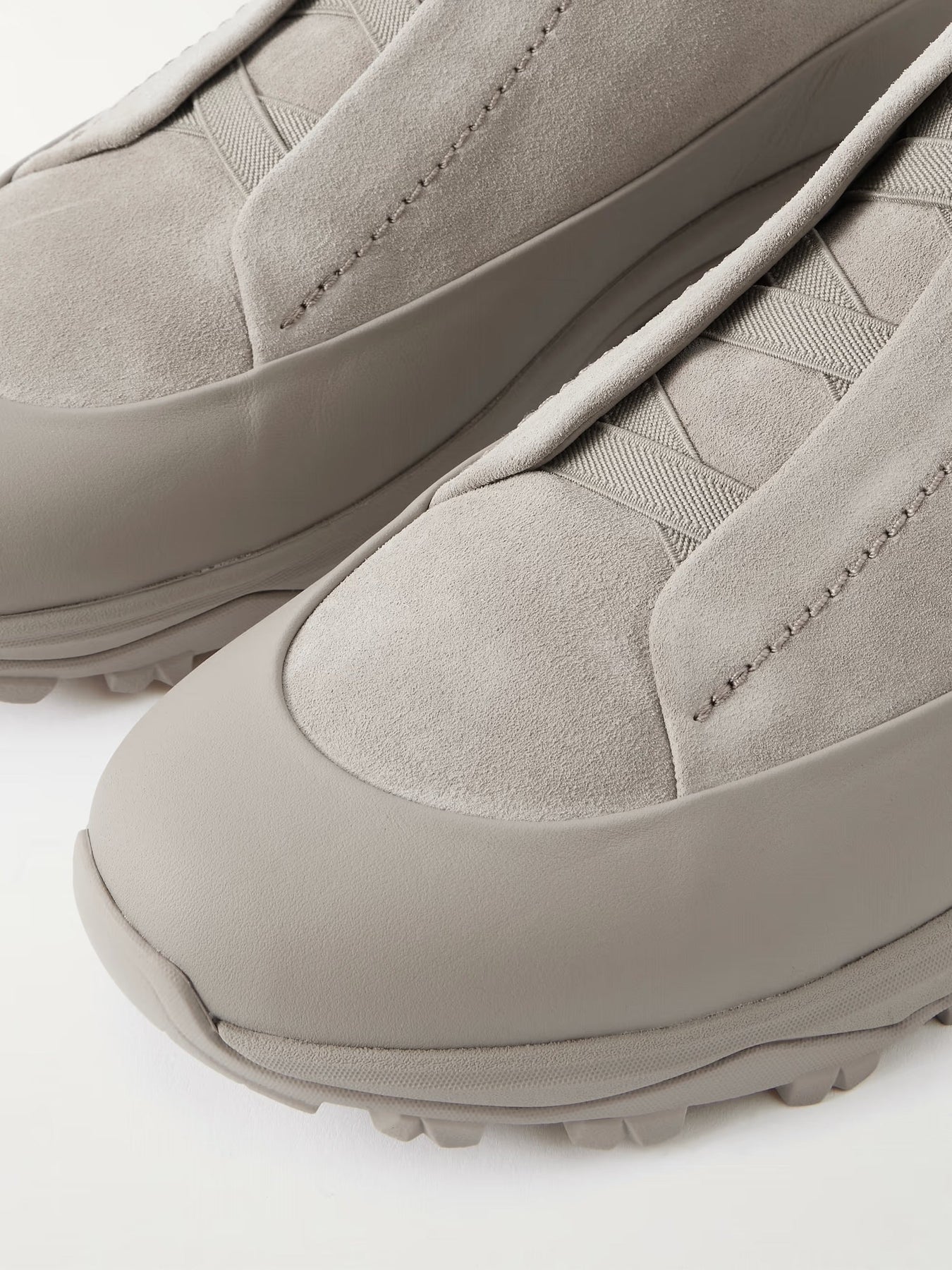 ZGN Triple Stitch Monte Rubber-Trimmed Suede Slip-On Sneaker – Taupe